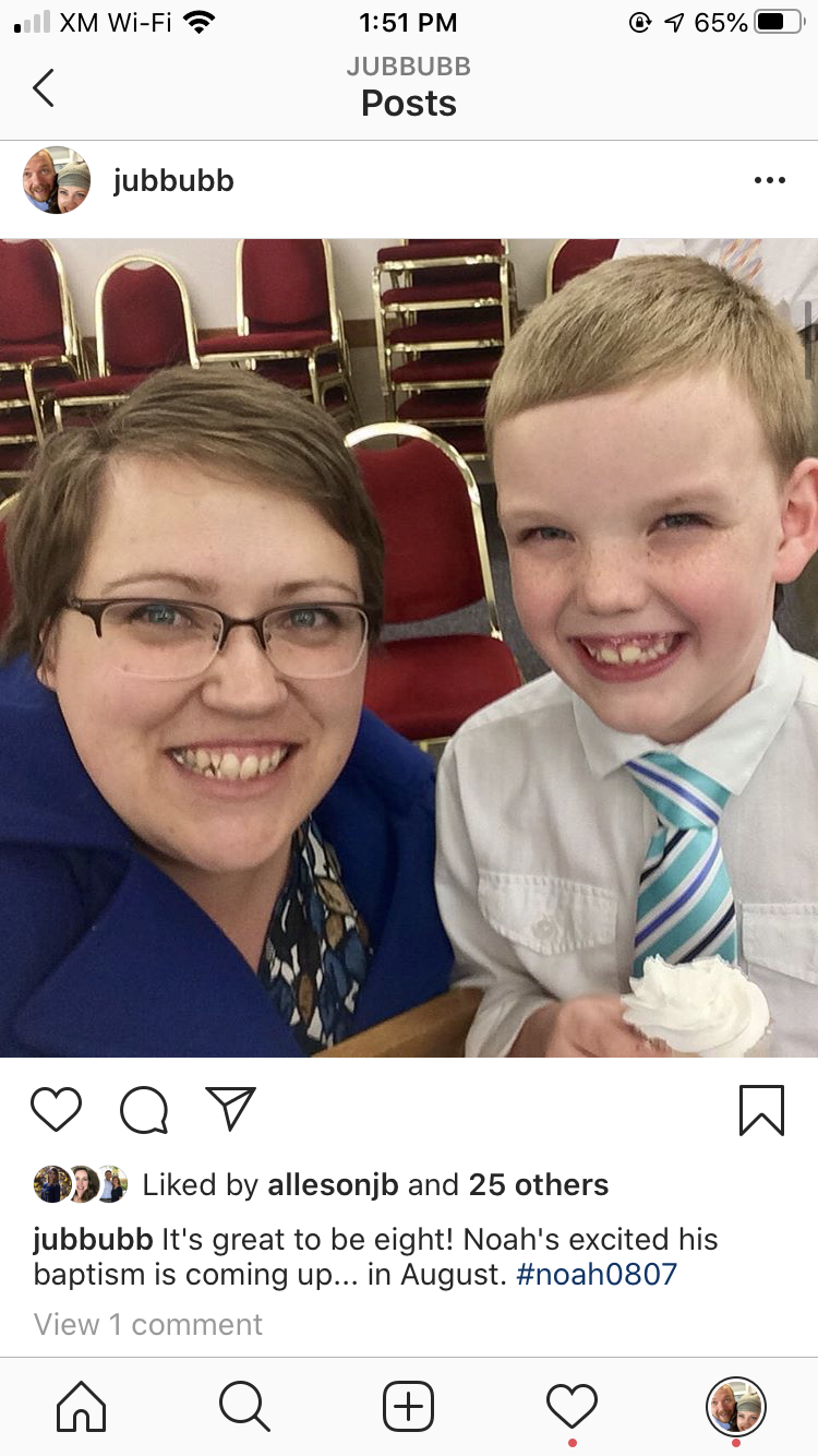 Mom and Noah at Great to be Eight, the baptism preview for next year. |